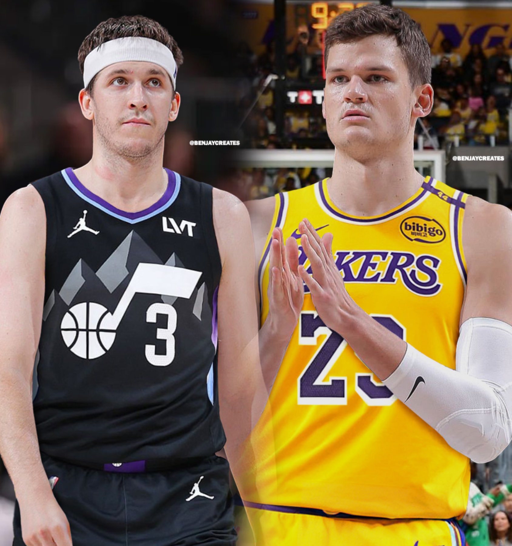虎扑09月26日讯 LakeShowYo更新X配资坊配资坊,晒出一张湖人球员奥斯汀-里夫斯和爵士球员沃克-凯斯勒互换球衣的合成图与球迷分享。