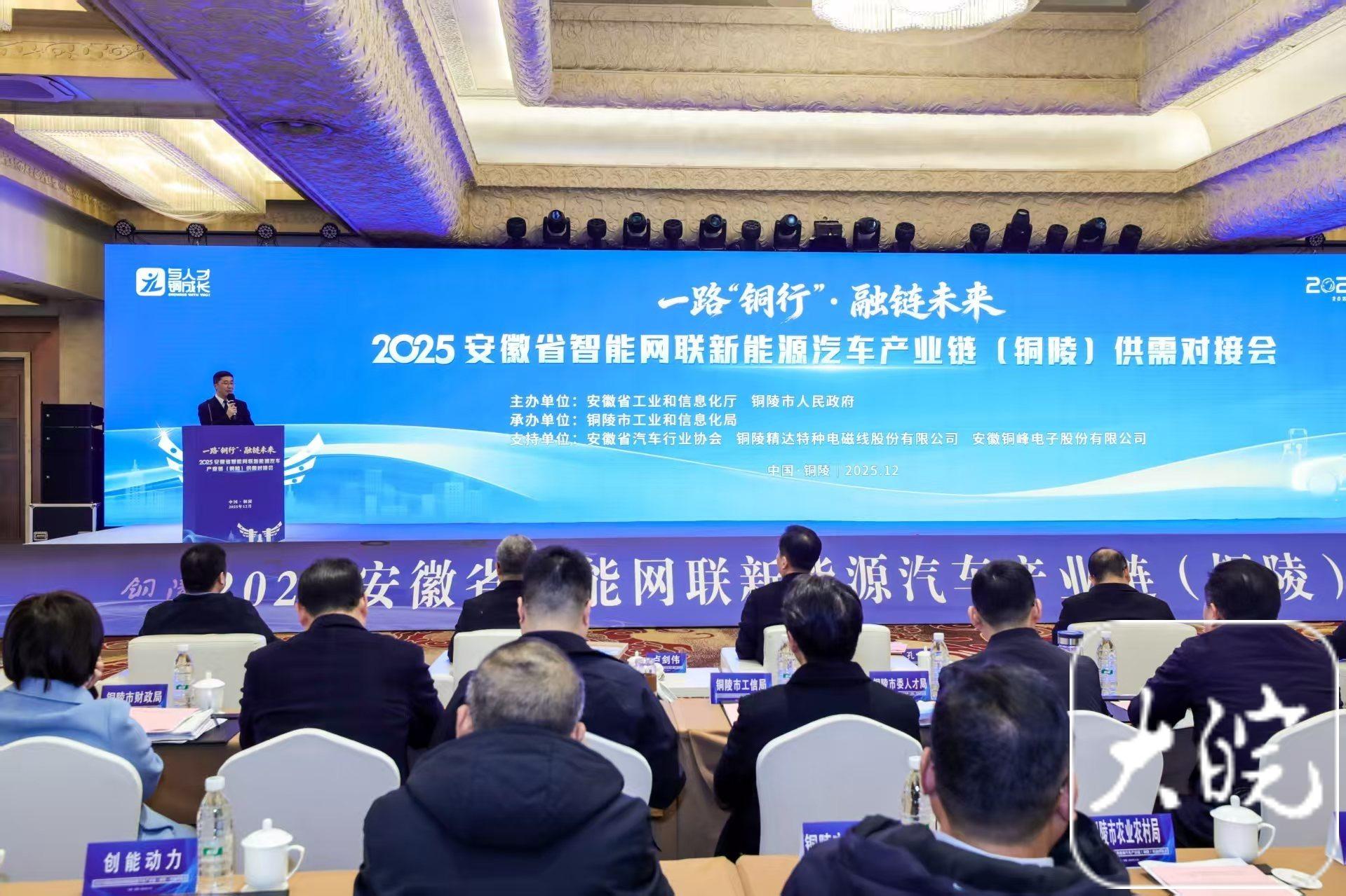大皖新闻讯 12月16-17日, 2025安徽省智能网联新能源汽车产业链供需对接会在铜陵市举行。会上,相关方面与汽车产业投资商签订了总投资30.3亿元的项目落地协议,依次进行了产业链合作、人才链合作、创新链合作、金融链合作签约,签约总金额5.54亿元。